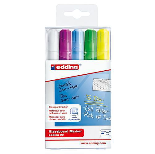 In moderne kantoren verschijnt steeds vaker een mooi glassboard i.p.v. het traditionele whiteboard. Deze glassboards bestaan in wit, zwart, rood of blauw. Speciaal voor het schrijven op glassboards en glasmagneetborden heeft Edding een nieuwe marker ontwikkeld die inspeelt op de eisen die worden gesteld aan het schrijven op glasborden. Zo zijn de kleuren dekkend, lichtbestendig en geschikt voor witte, gekleurde en zwarte glassboards. De opschriften zijn droog uitwisbaar, zonder reinigingsmiddel, zelfs na meerdere weken.
