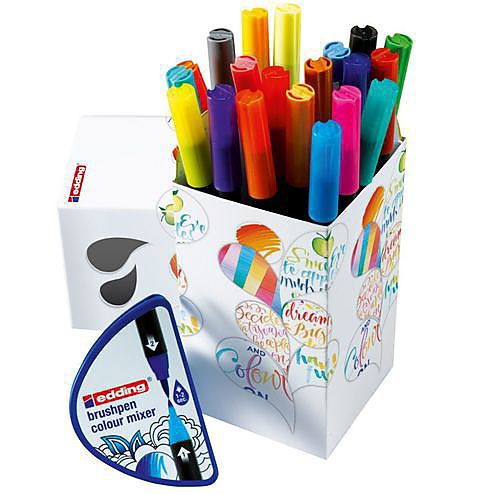 Ben je al bekend met handlettering? Vind je het leuk om kleurverloop aan je brushletters toe te voegen? De Colour Happy Edition laat u uw creativiteit uiten op de edding-manier: fraaie handlettering, zacht inkleuren Met de innovatieve Brushpen Colour Mixer kun je - met slechts 20 penseelpennen - maximaal 190 verlopende kleuren creëren.