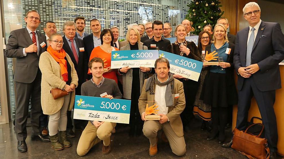 De Aedificas Foundation, een initiatief van de Confederatie Bouw om bouwbedrijven aan te zetten tot het ondersteunen van de kwetsbaren in deze samenleving, heeft haar jaarlijkse Awards uitgereikt. De Aedificas Foundation Awards belonen bouwbedrijven die samen met non-profitorganisaties kwetsbare groepen re-integreren in de maatschappij. Veel bedrijven doen namelijk aan maatschappelijk verantwoord ondernemen. Dit jaar vielen vier bedrijven in de prijzen: ze krijgen elk 5.000 euro om hun project verder uit te bouwen.