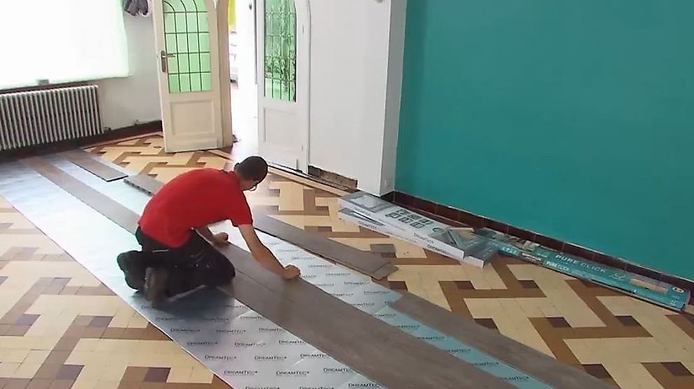 Ligt de onderlaag er? Dan kan je aan de vloer zelf beginnen. Leg die minstens achtenveertig uur op voorhand in een verwarmde ruimte. Zo kan hij acclimatiseren.