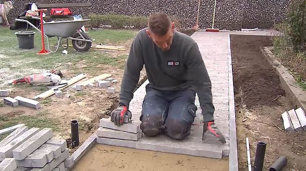 In de vorige aflevering legden we de basis voor ons tuinpad in natuursteen. Daar zag je al hoe we de boordstenen plaatsten in stabilisé. De ruimte tussen de boordstenen werd opgevuld met een onderfundering uit betonpuin en een worteldoek. Daarop plaatsten we het funderingsbed in stabilisé. In dat bed legde we een wapeningsnet om scheuren en breuken te voorkomen. Het bed trilden we aan, waarop dan een straatlaag van enkele centimeter kwam te liggen. Hierop kunnen we de klinkers leggen.