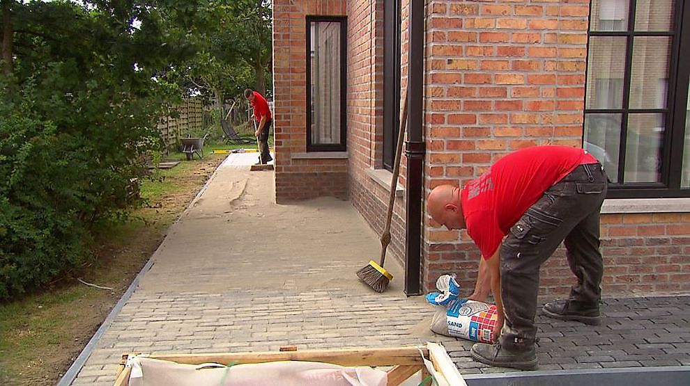 In een volgende aflevering leggen we rond het huis nog een klinkerpad. We wachten nog even met het opvoegen tot we alles gelegd hebben. Zo kunnen we alles in één keer doen.