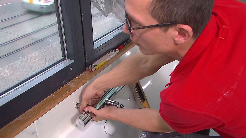 Roger - ep. 8 - Kraanwerk plaatsen. Met de wanden en de vloer in orde, kunnen we de badkamer zelf installeren. We beginnen bij het bad. Dit komt in één stuk en kan je zo plaatsen. Ook het kraanwerk installeren we in deze aflevering.